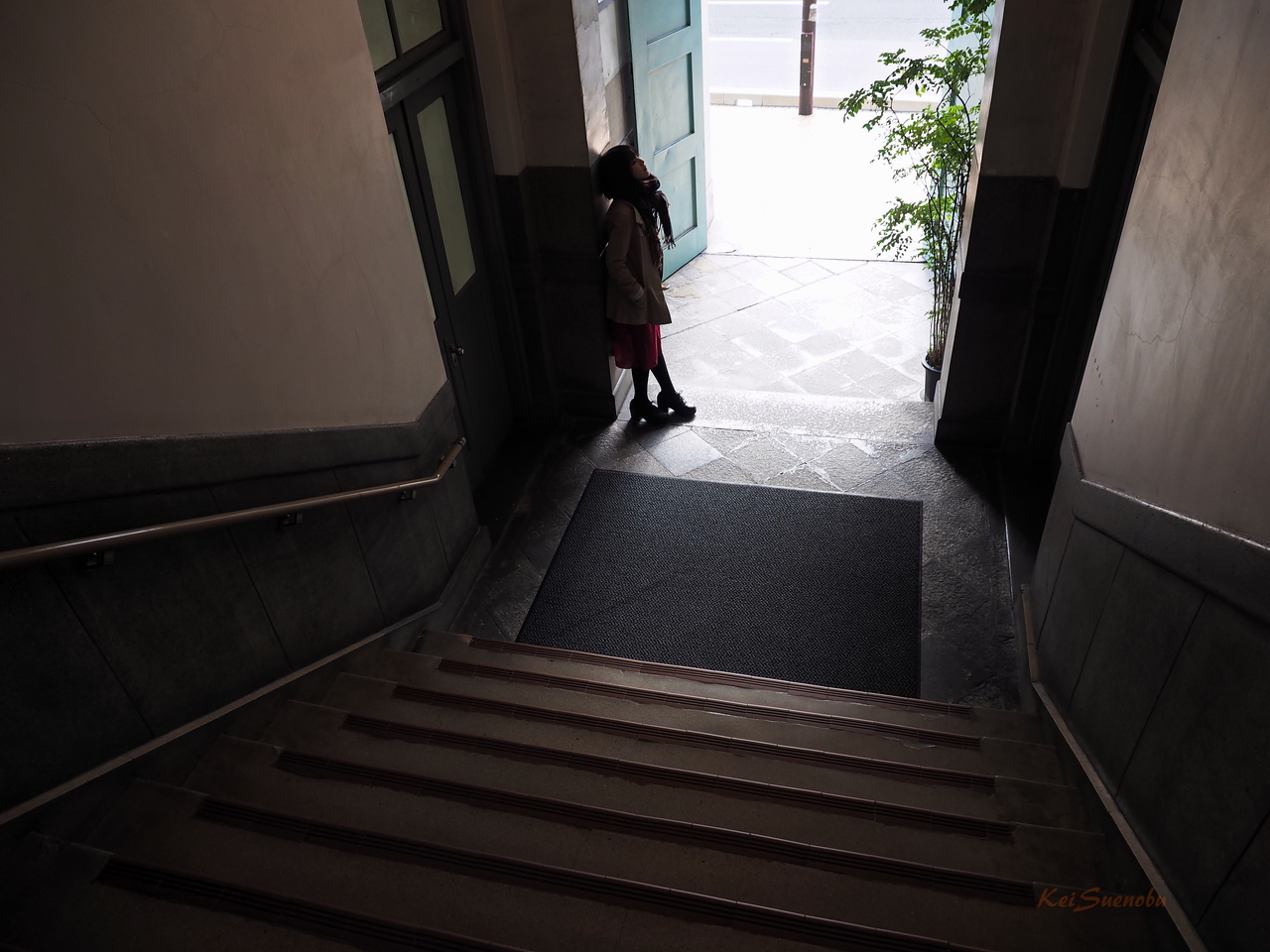 少しだけ開いた裏口の向こうには何があったのか。下見をしたはずなのに思い出せない。外を見ていた み さんが視線をこちらに戻す様子。表へ廻ってからも、入口付近に佇んでいる彼女を撮影しながら、彼女が何を見て何を考えていたのか_そんな問い掛けを心の中で繰り返していた。
